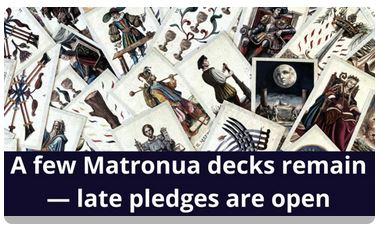 Sur le projet « the Ancestral Tarot Deck », la créatrice dit qu’elle a envoyé les demandes de coordonnées postales en avril, mais personne n’a rien reçu, et les commentaires sont très nombreux à affirmer qu’il s’agit d’un « scam » (une arnaque), et vu l’absence de nouvelles depuis bientôt un an, je ne peux que leur donner raison.